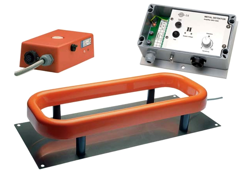 Zařízení k detekci kovů pro použití zejména na pásových dopravnících.