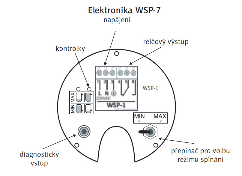Spínač pracuje nezávisle na dielektrické konstantě a vodivosti měřené látky. Různá provedení umožňují použít spínač v mnoha aplikacích. WSP-7 se dodává ve 4 délkách. Nastavení délky podle požadovaného bodu sepnutí je možné pomocí přesuvné průchodky.